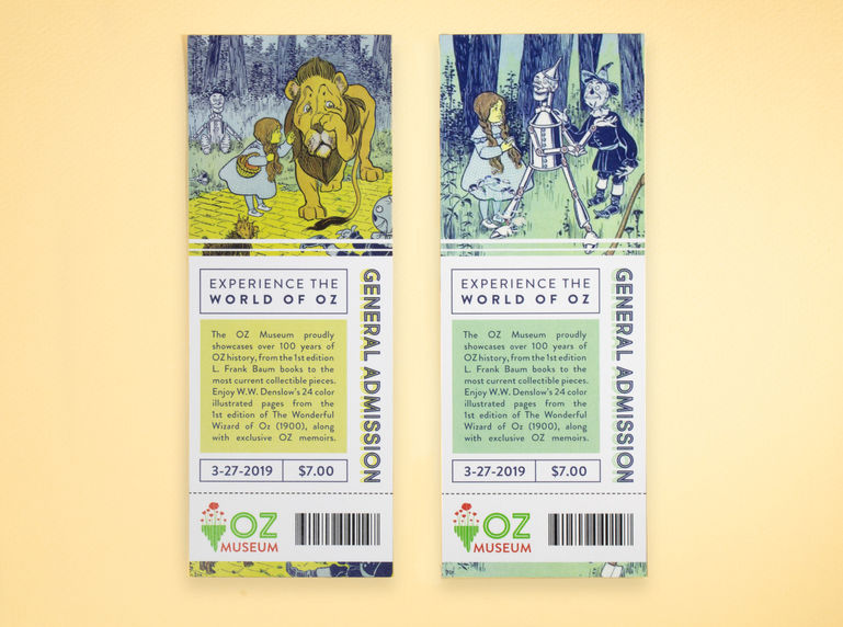 This project's goal was to rebrand the Oz Museum in Kansas and give it a clean, modern look that draws in future customers. This branding system is based off of the original illustrations from the first edition of The Wizard of Oz, which are on display at the museum and featured on the museum tickets. All other illustrations were custom made for this project.